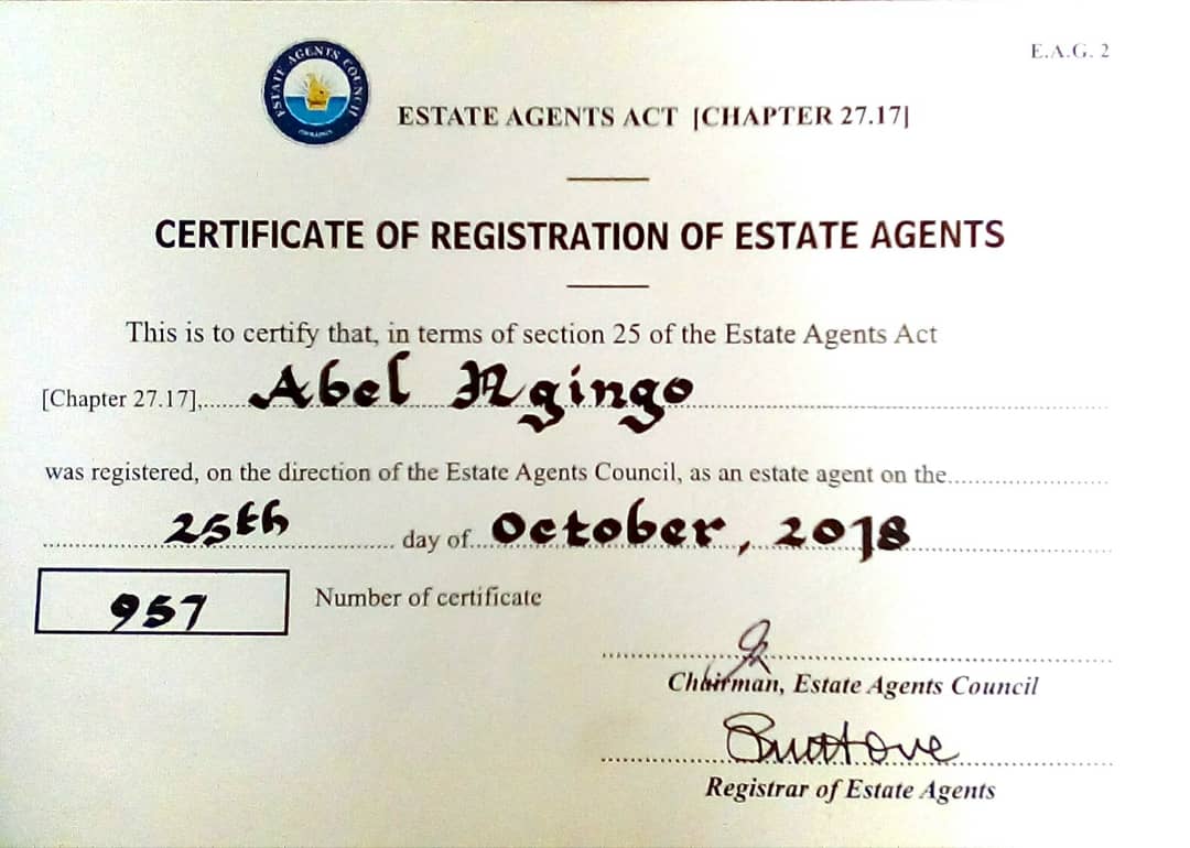 Abel Nsingo from Abel Properties on Dawnville site in Woodville, Bulawayo.